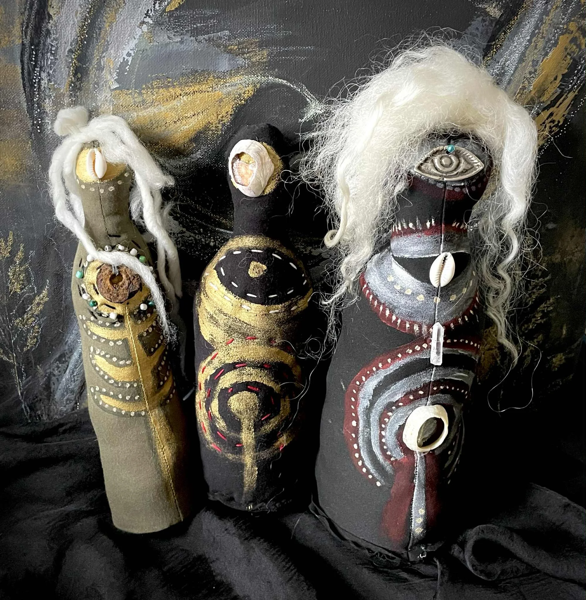 Reclaiming keening isn’t a practice just using the voice, it also employs art projects such as doll making or weaving. As a doll maker her work through dolls connects to the Ancestral Mothers of Scotland, as well as the process of doll making providing healing and ways to express our grief symbolically.