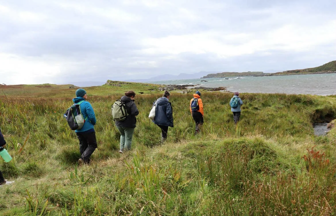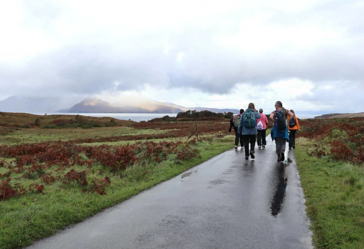 Kildonan Bay is a 40 minute walk from the hostel. This walk involves walking through a field, then taking a tarmac road down to Kildonnan Bay. We will then walk across marshy ground, over hillocks, walking over streams and small tidal pools to the bay shore.